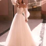 AGRIAS ist unser großes Prinzessinnen-Brautkleid, gefertigt aus hochwertigem mattem Satin. Dieses sexy Kleid verfügt über eine lange Schleppe und einen Herzausschnitt mit geradem Rücken. Die drapierte Korsage betont eine natürliche Taille und schmeichelt die Silhouette auf wunderschöne Weise. Verziert mit kurzen, schulterfreien Drapierärmeln, verleiht es eine elegante und romantische Note. Die durchdachten und integrierten Push-Ups in der Korsage garantieren eine perfekte Passform.